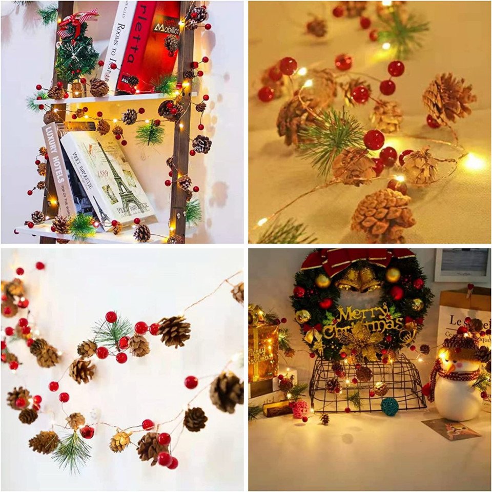 Bright minimalism: more and more people are choosing discreet, white or warm lights with natural decorations: twigs, cones, wood.