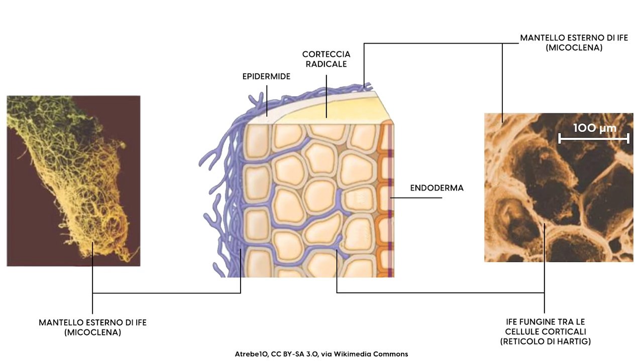 First of all, it is not certain that the mushroom involved necessarily expresses a macroscopic fruiting body as we are used to seeing in the woods. But excellent examples of mycorrhizal symbiosis are those between chestnut trees and porcini mushrooms or between oaks and truffles.
